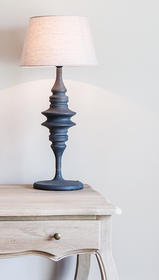 A fabric shade with woven linen texture, in a neutral oatmeal colour.